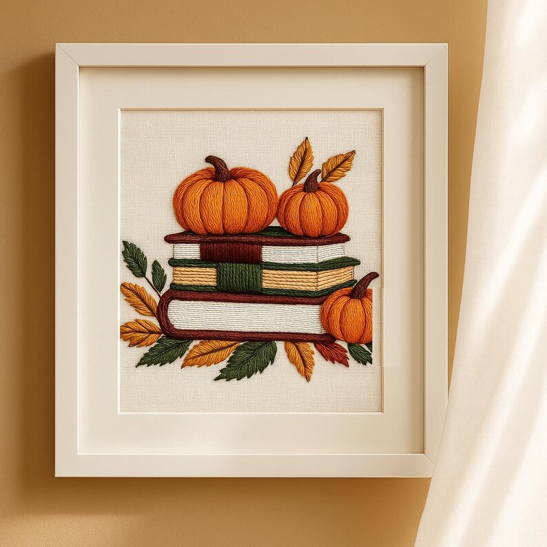 Autumn Pumpkin & Book Stack Embroidery Kit
