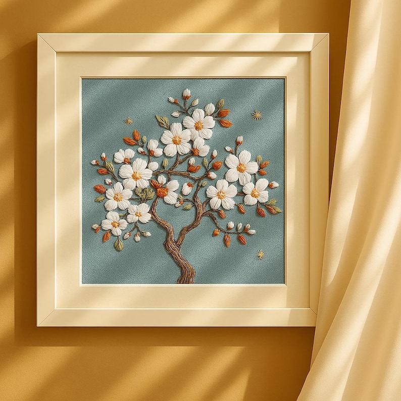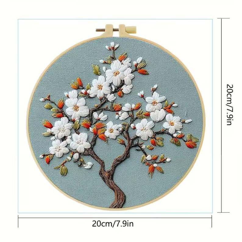 Experience the relaxing art of embroidery with this beginner-friendly cherry blossom tree kit. This DIY set includes everything you need to create a delicate floral design that adds charm to any home or makes a thoughtful handmade gift. Featuring blooming white flowers with warm orange accents, it’s perfect for crafting enthusiasts and beginners alike.