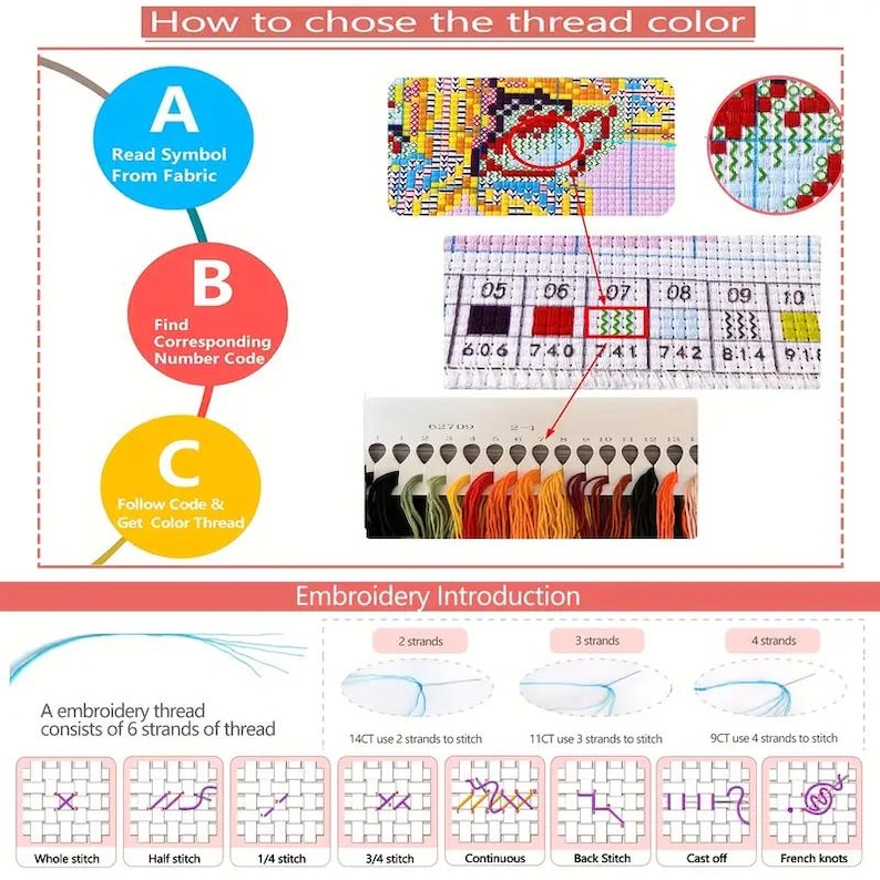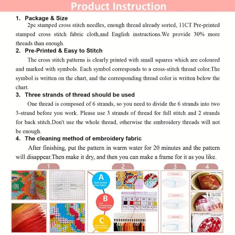 - Colors of the fabric and threads may slightly vary due to differences in screen resolution and color settings (for example, the fabric may appear more yellow or white). Thank you for your understanding.
