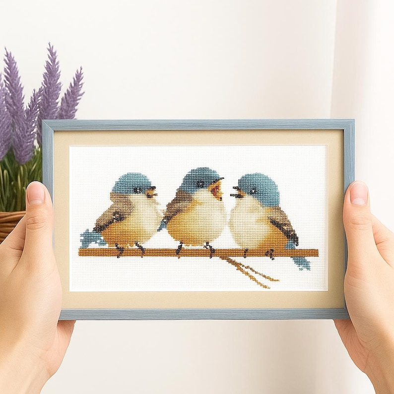 Bring the charm of nature into your home with the Bird Song Cross Stitch Kit. This delightful DIY embroidery set features three watercolor birds perched on a branch, offering a calming and creative crafting experience. Perfect for beginners and experienced crafters alike, this kit makes a thoughtful handmade gift or a cozy personal project.