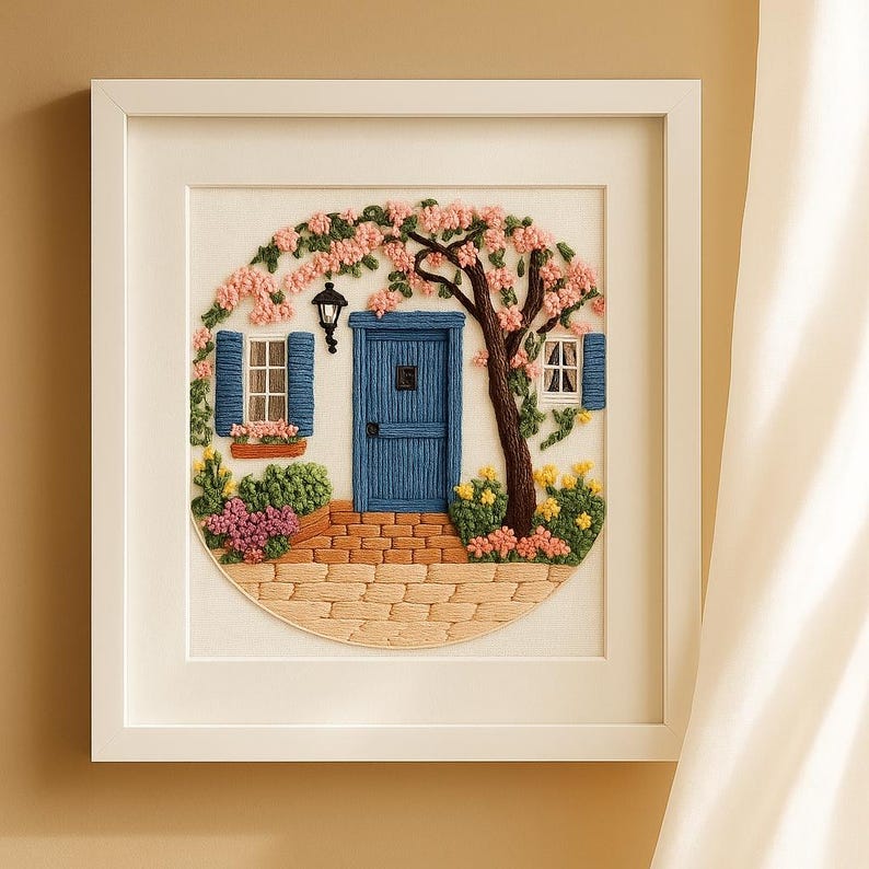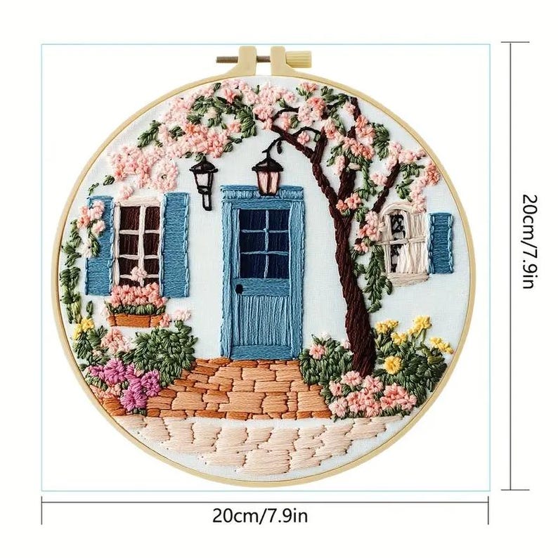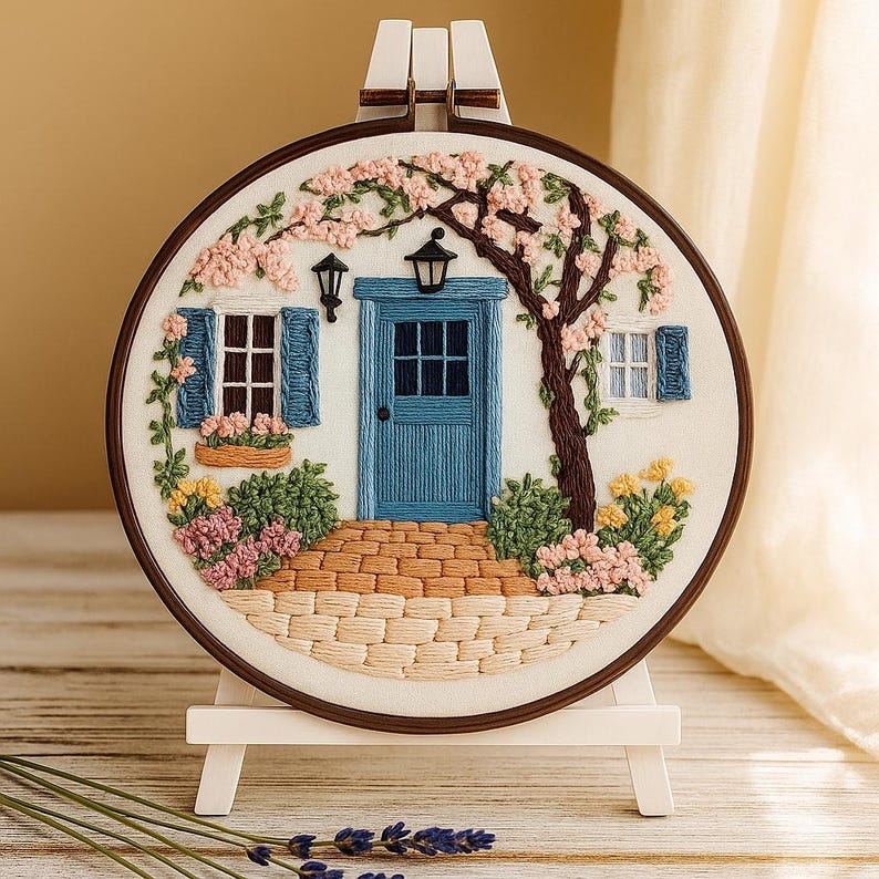 Bring the serene beauty of spring into your home with our Blossom Tree Floral Embroidery Kit. Featuring a charming house door framed by soft pink cherry blossoms, this elegant design adds a peaceful and creative touch to your craft time. Perfect for anyone who enjoys mindful stitching or creating meaningful handmade decor, this kit provides everything needed to complete your own sakura-inspired wall art.
