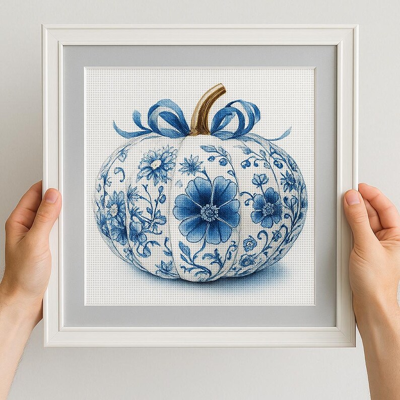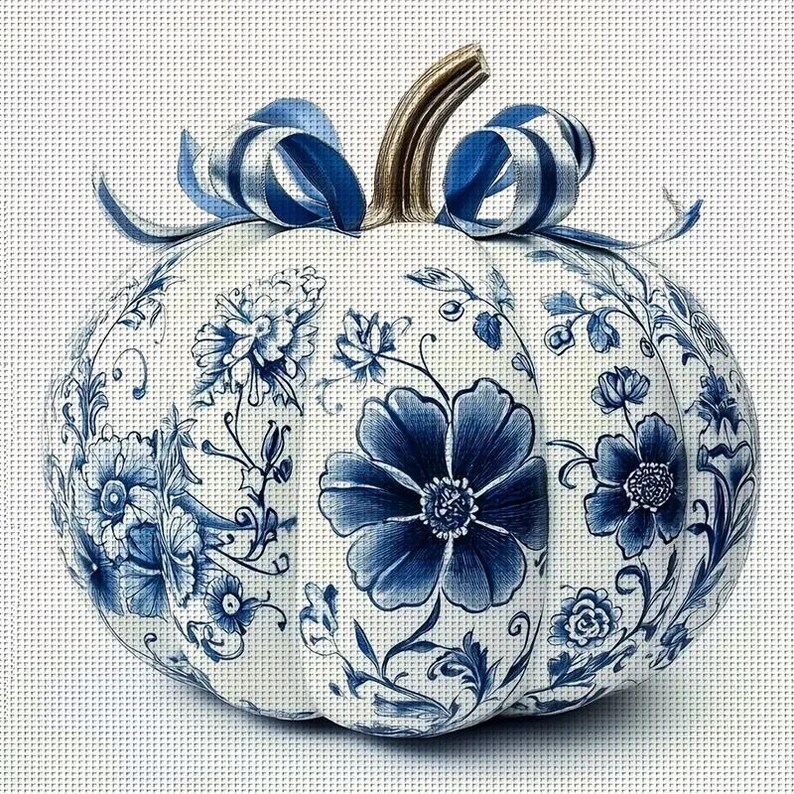 Bring a touch of autumn elegance to your home with the Blue Floral Pumpkin Cross Stitch Kit. Ideal for both beginners and experienced crafters, this kit features a charming porcelain-style pumpkin adorned with delicate blue flowers. Create a cozy, handmade decoration perfect for seasonal decor or as a thoughtful gift. The kit includes everything you need, from pre-printed canvas to detailed instructions, making stitching simple and enjoyable.