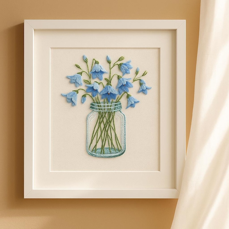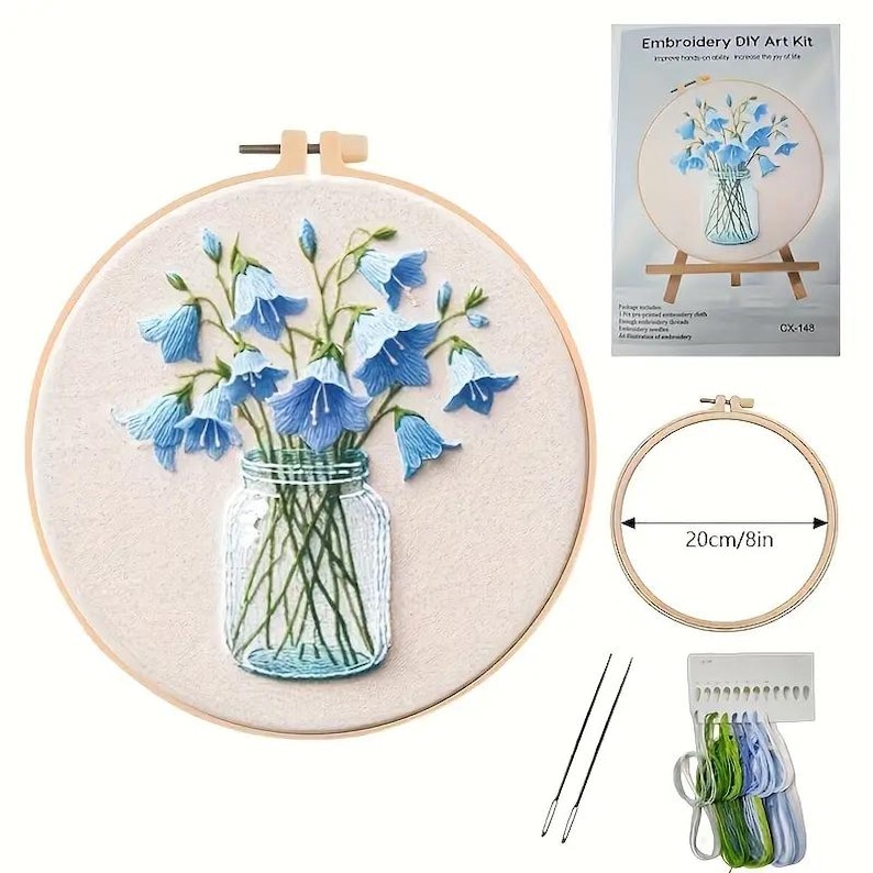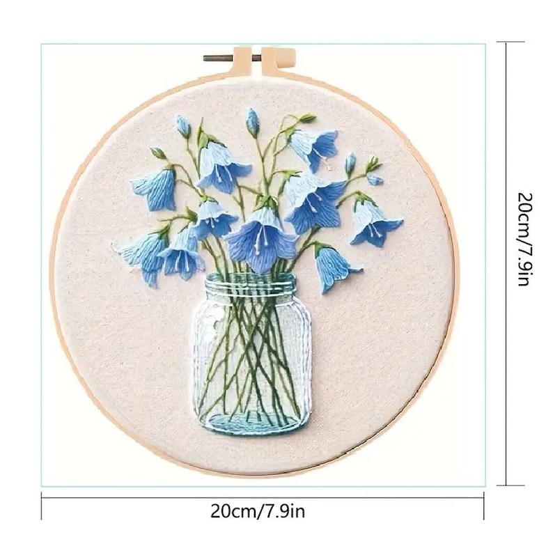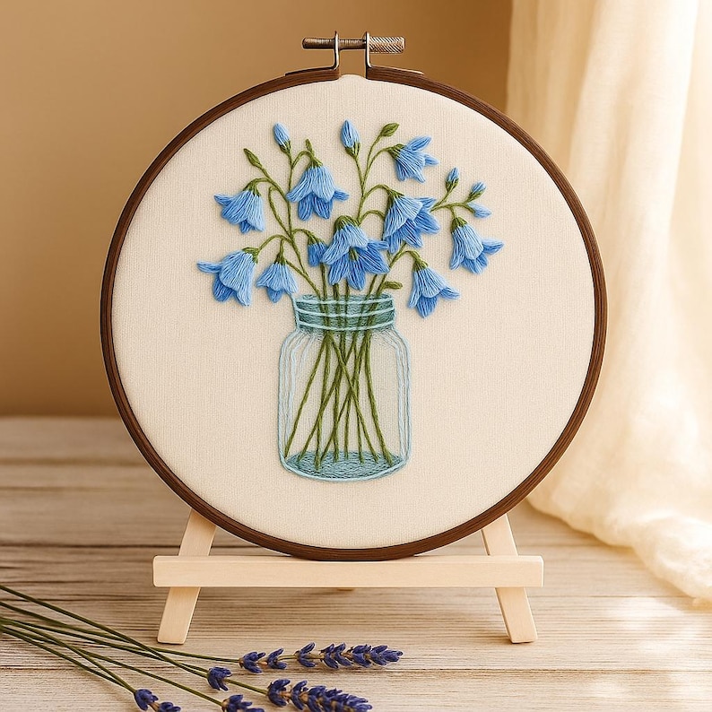 Create a stunning handmade floral design with the Bluebells Embroidery Kit, a complete DIY set designed for both beginners and experienced stitchers. Featuring a beautiful arrangement of bluebell flowers in a mason jar, this embroidery kit offers a peaceful and creative way to enjoy stitching while producing a lovely piece of home décor.