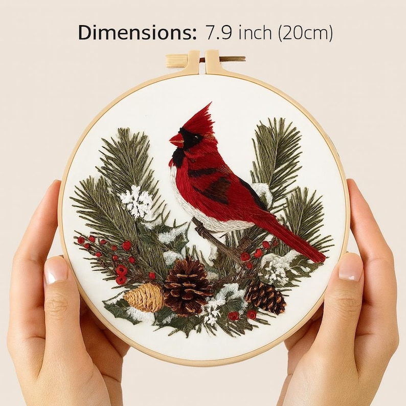 - 1 pre-printed embroidery fabric with cardinal bird design