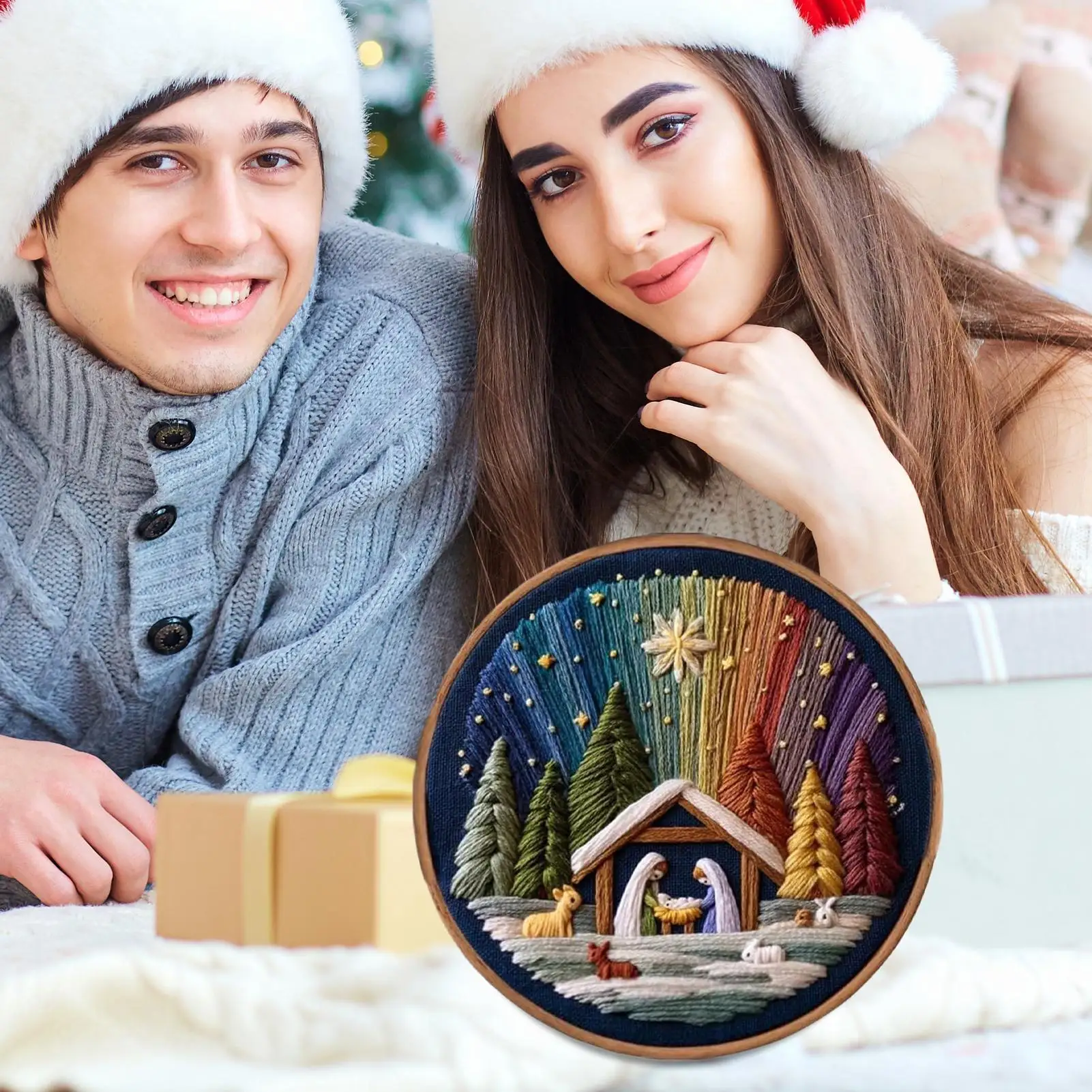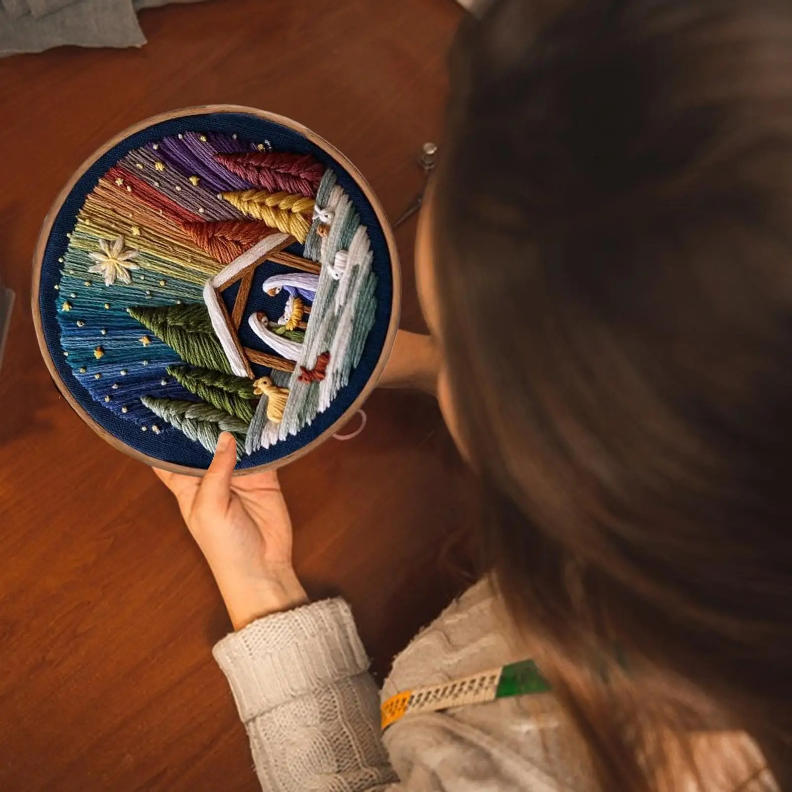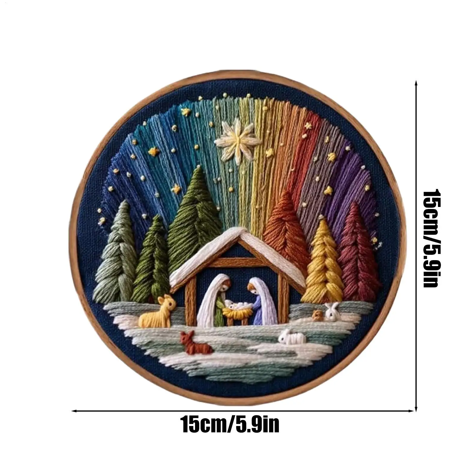- 1 x Pre-printed embroidery cloth with Nativity Scene design