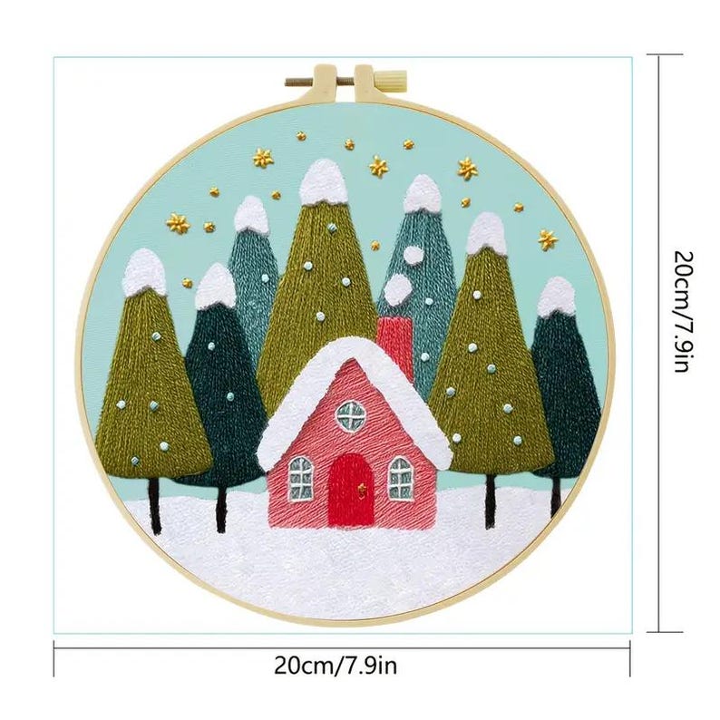 Create your own festive holiday decor with this beginner-friendly Christmas Winter Forest Embroidery Kit! Featuring a charming pink cottage surrounded by snow-covered trees under a starry winter sky, this DIY kit is perfect for holiday crafting. Ideal for beginners, it provides everything you need to complete a beautiful satin stitch project that makes a thoughtful handmade gift or a cozy decoration for your home.