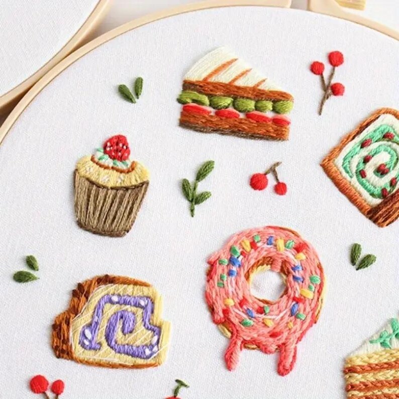Bring your creativity to life with the Dessert Lovers Embroidery Kit for Beginners – a fun and easy DIY craft designed for those who enjoy stitching and sweets alike. This embroidery kit features a colorful collection of desserts including cupcakes, donuts, and pastries arranged in a cheerful and modern layout. Whether you’re new to embroidery or looking for a relaxing weekend project, this kit provides everything you need to start stitching right away.
