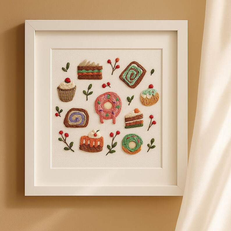 It also makes a wonderful handmade gift idea for birthdays, holidays, or anyone who enjoys DIY crafts and home decor. Once completed, your dessert-themed embroidery can be framed, hung on the wall, or used to personalize a creative space.