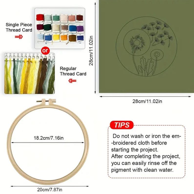 - 1 Pre-printed embroidery fabric with floral dandelion pattern