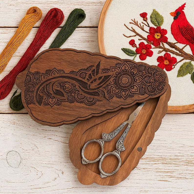 Perfect for embroidery, sewing, or cross-stitch enthusiasts, this wooden case also makes a thoughtful gift for anyone who appreciates fine craftsmanship and creative tools.