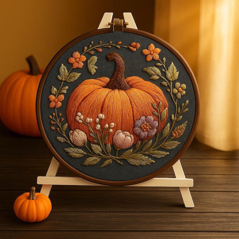 Celebrate the beauty of fall with this elegant Fall Pumpkin Embroidery Kit, designed for adults who enjoy mindful and creative crafting. Featuring a warm autumn palette and a detailed pumpkin surrounded by soft florals and leaves, this DIY embroidery kit brings cozy seasonal charm to any room.