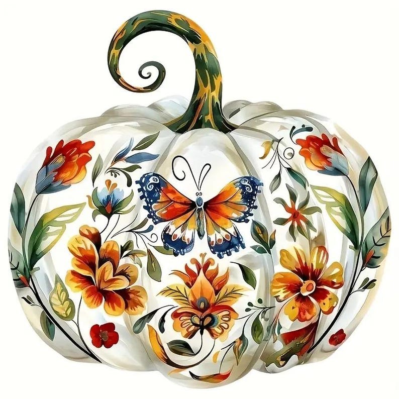 • Elegant pumpkin and floral butterfly design for seasonal charm