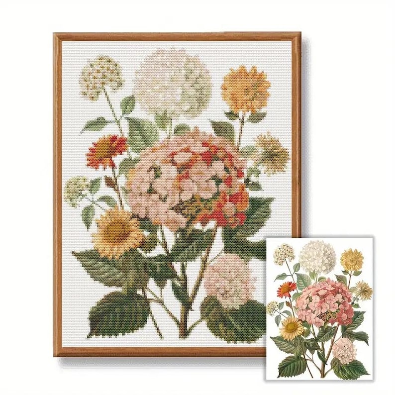 Create a timeless piece of art with this Floral Cross Stitch Kit, featuring a vibrant botanical design of hydrangeas, sunflowers, dahlias, and zinnias. Inspired by vintage floral illustrations, this kit combines creativity and relaxation – perfect for those who appreciate nature-inspired decor and mindful crafting.