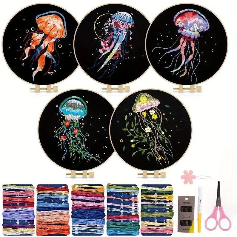 Dive into a sea of creativity with the Floral Jellyfish Embroidery Kit by LavenderStitchUA. This charming DIY embroidery set blends the grace of ocean life with delicate florals, creating a stunning hoop art piece perfect for home decor or heartfelt gifting.