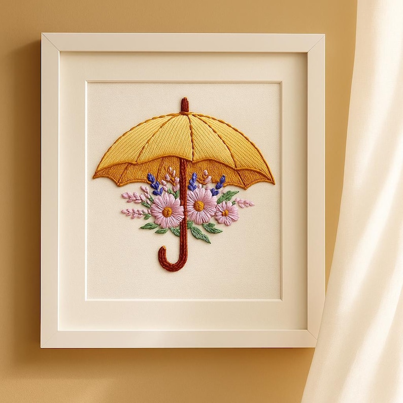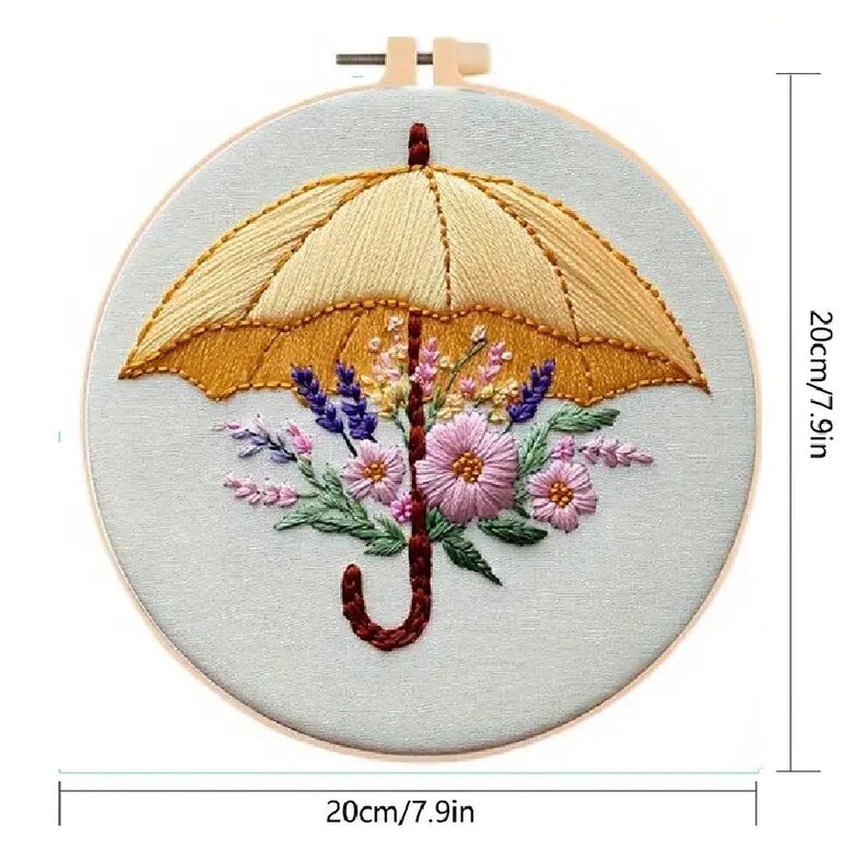 Add a touch of handmade charm to your home with this Floral Umbrella Embroidery Kit, a delightful DIY craft set perfect for beginners and experienced stitchers alike. Featuring a cheerful yellow umbrella overflowing with blooming flowers, this beginner-friendly embroidery kit helps you create a beautiful piece of hoop wall art that celebrates creativity and color.