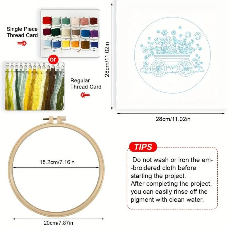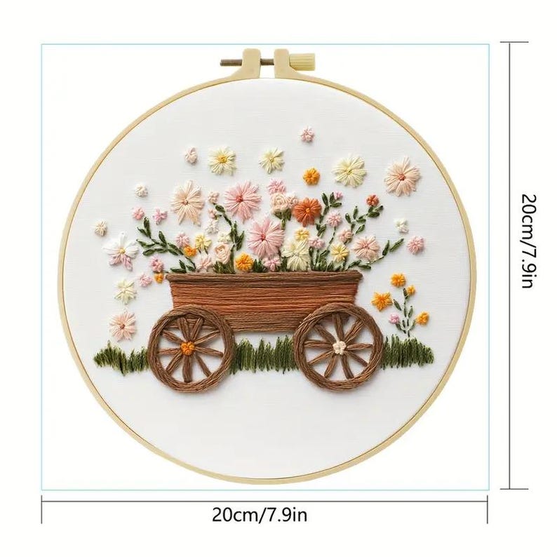Each kit includes all the essential materials and step-by-step instructions, making it easy to create a stunning piece of textile art. Once finished, frame your embroidered floral wagon to add a cozy touch to any room or gift it to someone special.