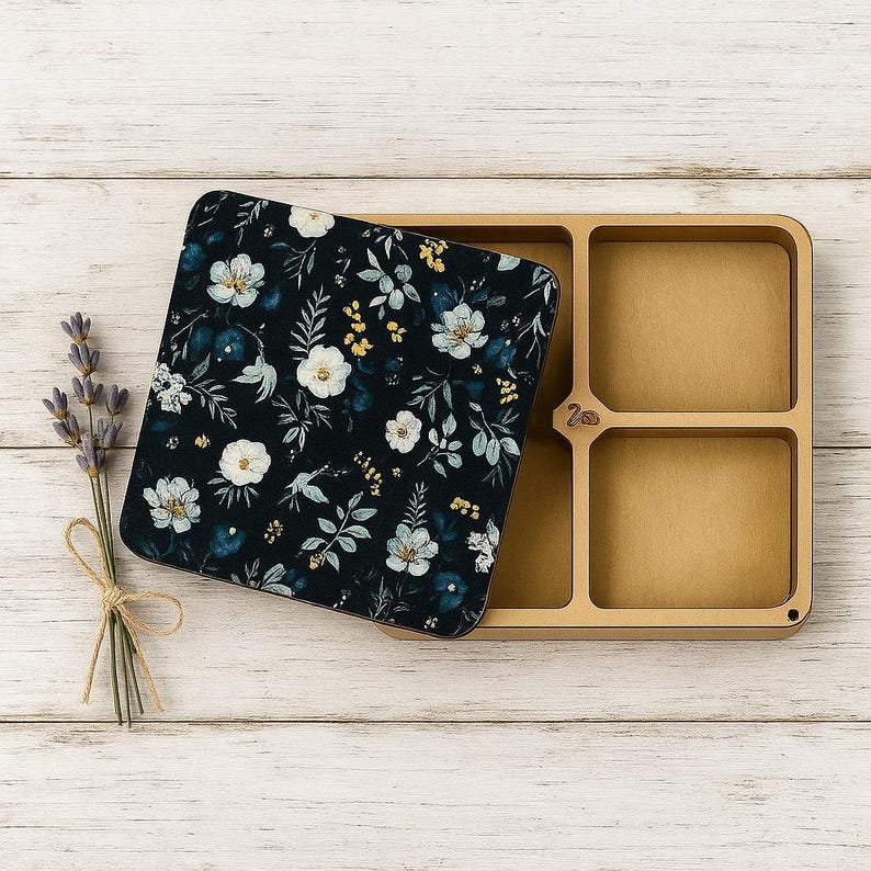 • 1 Wooden Thread Organizer Box with Floral Magnetic Lid