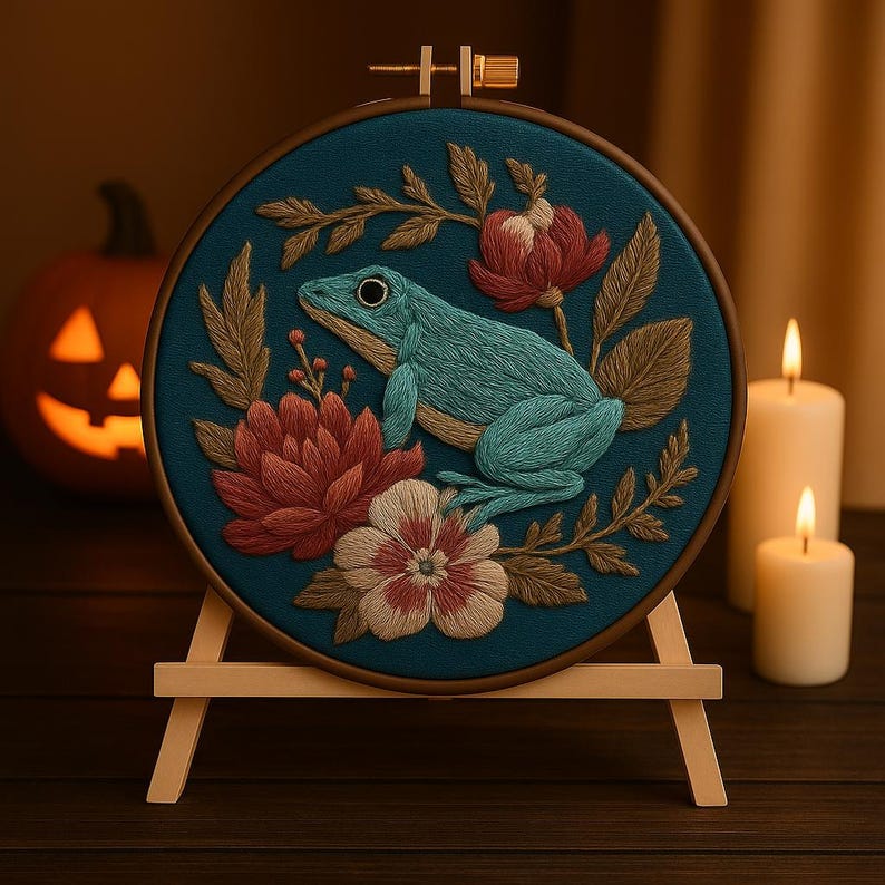Bring a touch of magic to your stitching with the Frog & Flower Embroidery Kit, a beginner-friendly DIY craft designed for relaxation and creativity. Featuring an enchanting frog surrounded by delicate flowers, this kit lets you create a charming hand-stitched piece that’s perfect for Halloween décor or year-round display.