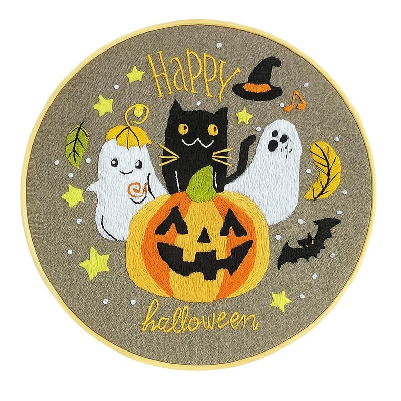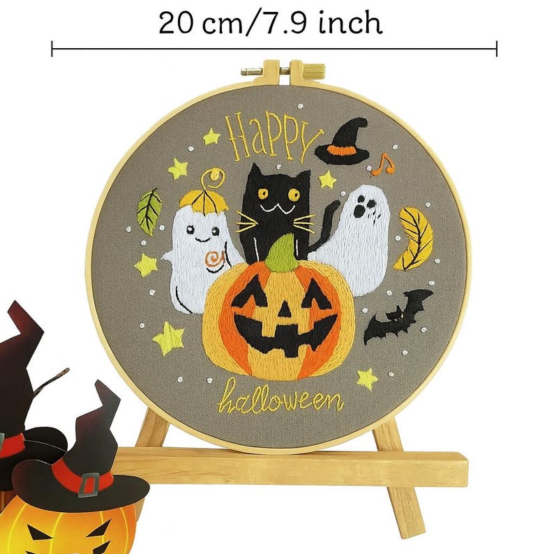 Celebrate Halloween with this delightful Halloween Embroidery Kit for Beginners, featuring a playful black cat, smiling pumpkin, friendly ghosts, and twinkling stars. Designed for both beginners and experienced stitchers, this kit brings festive charm and creativity to your home decor.