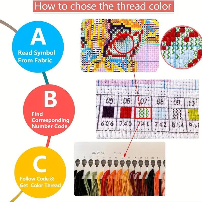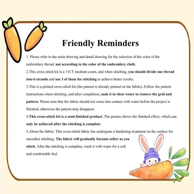 - Colors of the fabric and threads may slightly vary due to differences in screen resolution and color settings (for example, the fabric may appear more yellow or white). Thank you for your understanding.