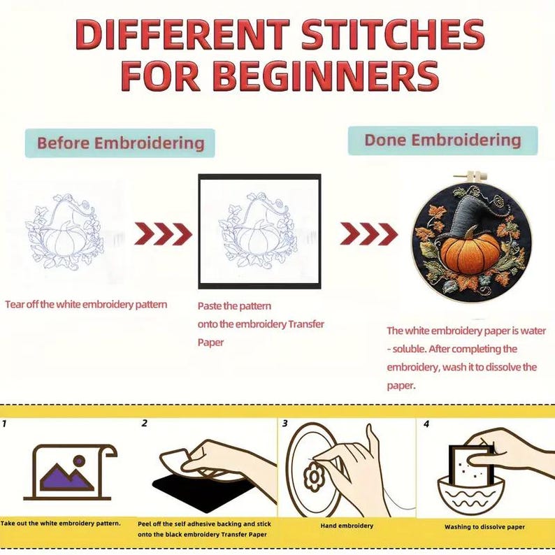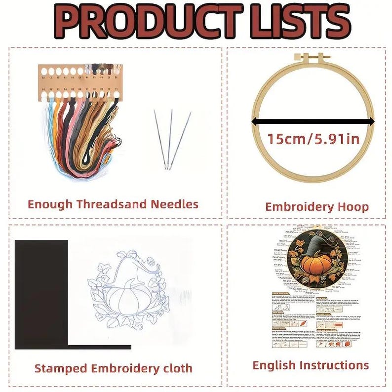 Stitch a touch of Halloween magic with this beginner-friendly Pumpkin Witch Hat Embroidery Kit. Designed for effortless creativity, this charming pattern features a festive pumpkin wearing a witch’s hat surrounded by autumn vines. The pre-printed black fabric makes it easy to follow, even if you’ve never embroidered before. Perfect for cozy fall evenings, Halloween decor, or a thoughtful DIY gift for a crafty friend.