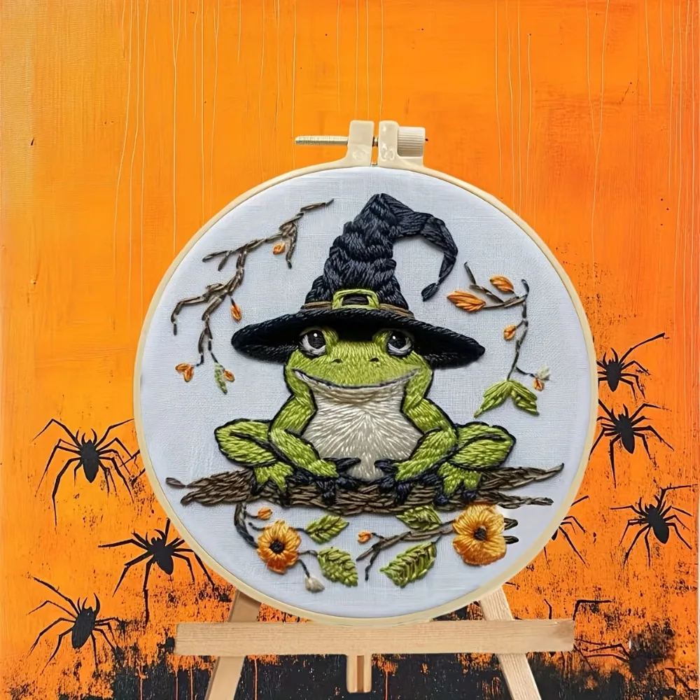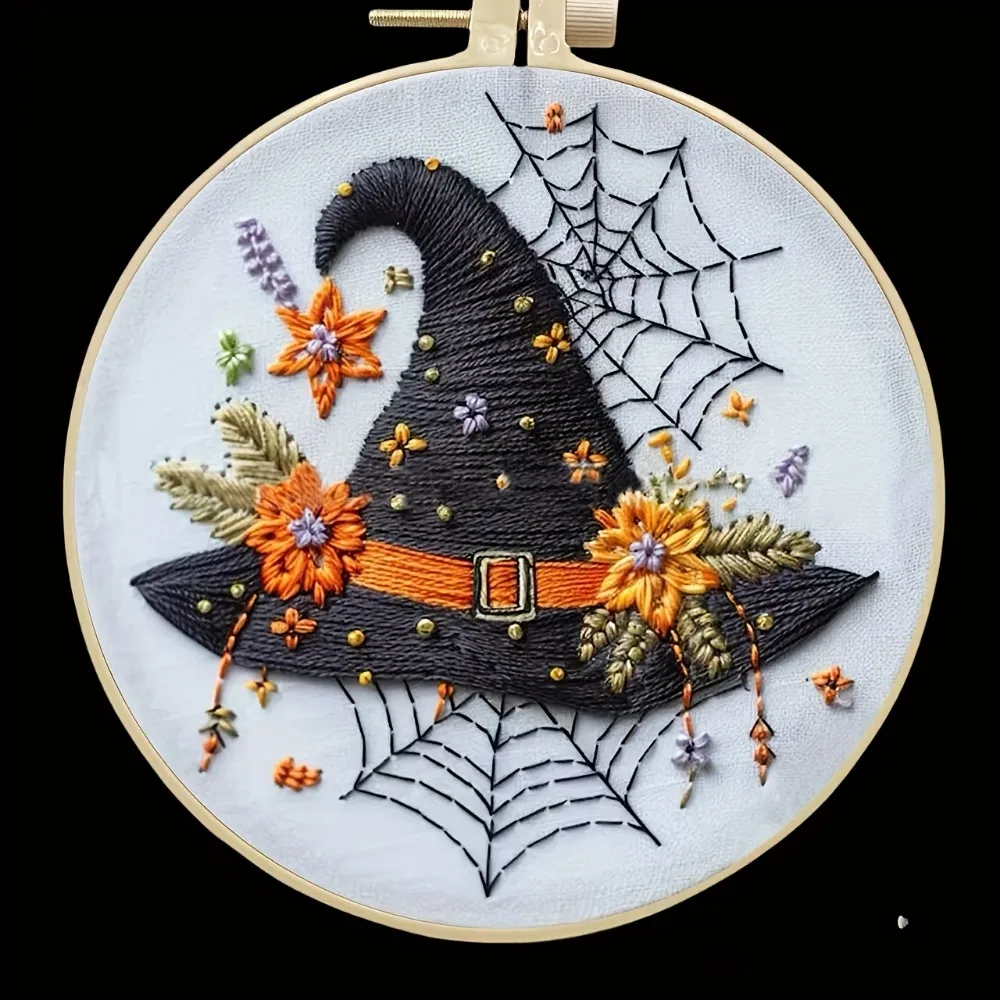 Celebrate the Halloween season with the Halloween Witch Hat Embroidery Kit Set, a creative and festive DIY project perfect for beginners and experienced stitchers. This embroidery kit set features beautifully detailed witch hat designs surrounded by Halloween-themed elements like pumpkins, bats, moons, and stars – a fun and spooky addition to your seasonal decor.
