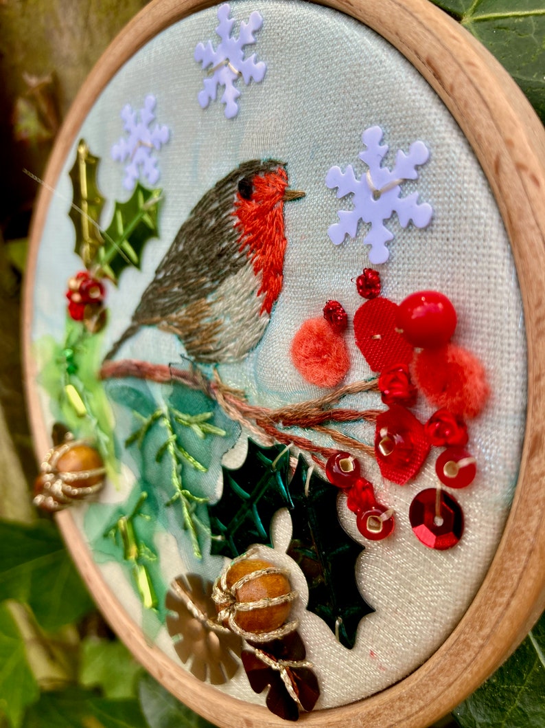 Celebrate the festive season with the charming red-breasted Robin perched on a holly branch, adorned with leaves, berries, and delicate snowflakes. This Holly and the Ivy Embroidery Kit combines simple stitching with sparkling beads for a rewarding and creative craft experience. Each Rowandean kit provides all the materials and clear instructions you need to create a beautiful piece of textile art. Display it elegantly in a 4″ or 5″ wooden hoop (not included) or gift it to a loved one.