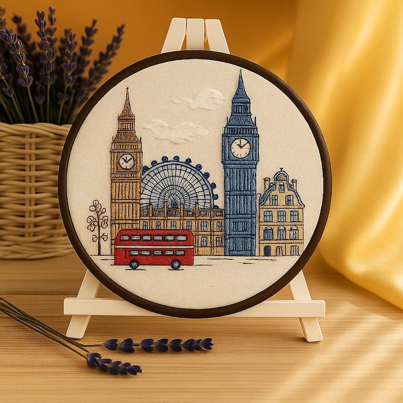 Capture the timeless charm of London with this elegant DIY embroidery kit featuring Big Ben, the London Eye, and the iconic red double-decker bus. Perfect for relaxing craft sessions, this kit lets you create a beautiful keepsake inspired by your favorite city.