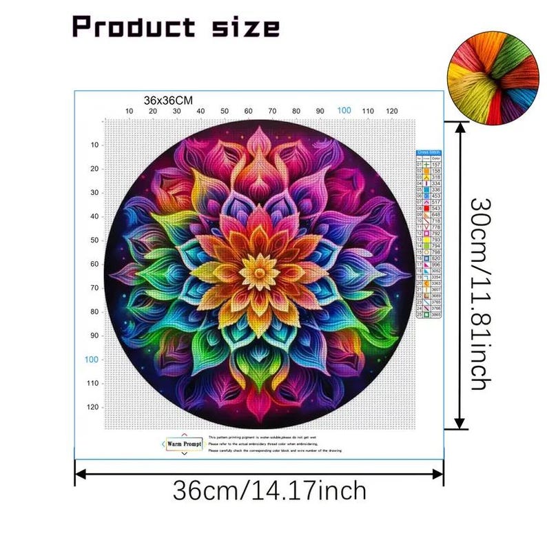 Add a splash of color and mindfulness to your space with our Mandala Cross Stitch Kit. Featuring a vibrant rainbow flower in a geometric mandala design, this kit is perfect for beginners and experienced crafters alike. Create a stunning handmade piece ideal for home décor, stress relief, or gifting. Everything you need is included to stitch a captivating, colorful masterpiece.