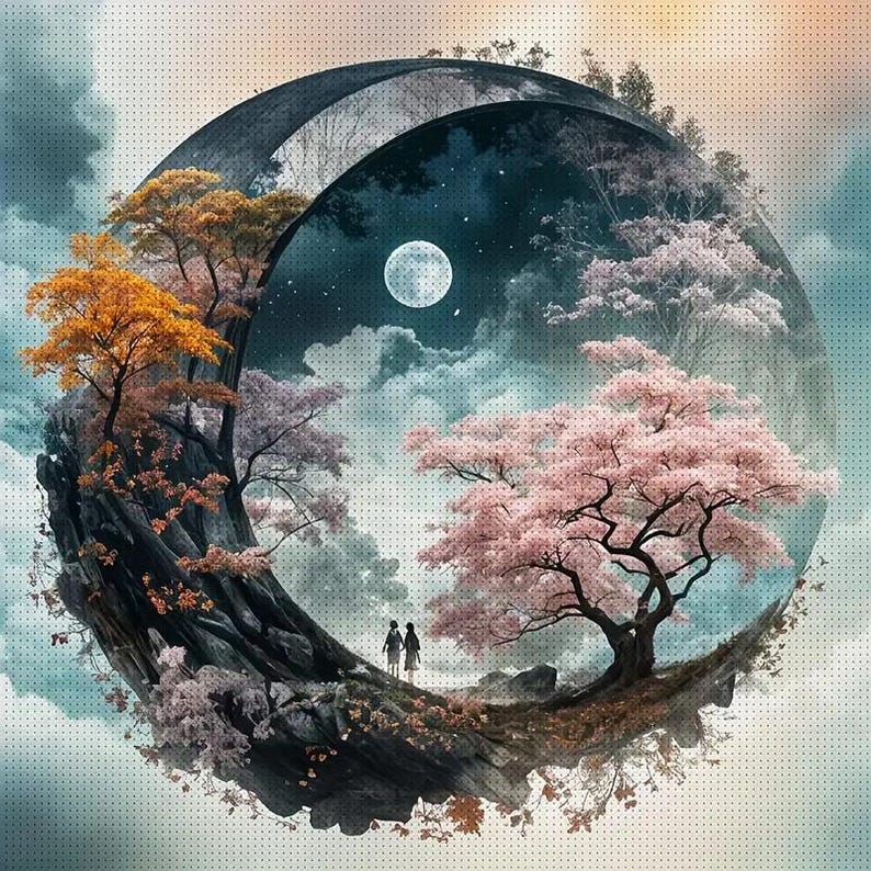 Create a masterpiece that captures the beauty of nature and the cosmos with our Moonscape Tree of Life Cross Stitch Kit. This stunning embroidery pattern combines the four seasons in one celestial design – a glowing crescent moon illuminating the symbolic Tree of Life. Perfect for both beginners and seasoned stitchers, this kit provides a calming, creative experience that results in a timeless piece of art.