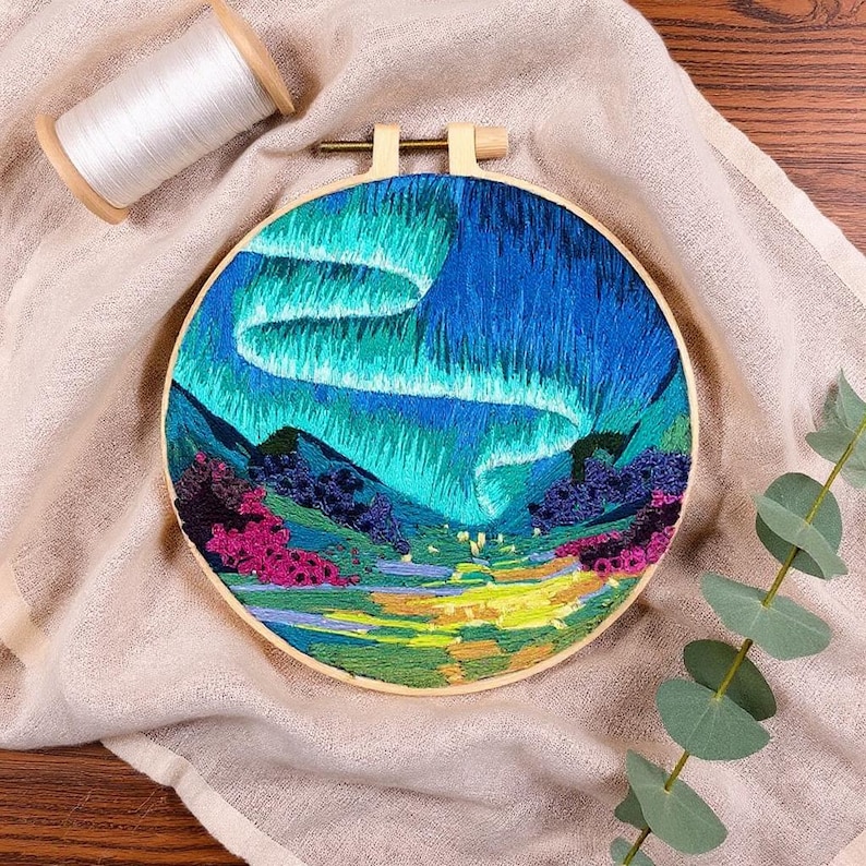 Capture the mesmerizing beauty of the Aurora Borealis with our Northern Lights Embroidery Kit – a relaxing and inspiring DIY craft designed for adults. This complete stitching set lets you create a glowing night sky landscape using vibrant color threads and a pre-printed fabric pattern that washes away easily for a flawless finish. Perfect for anyone who loves mindful, creative projects that bring art and tranquility together.