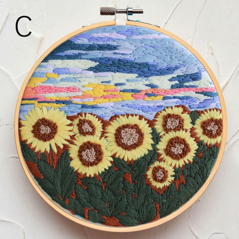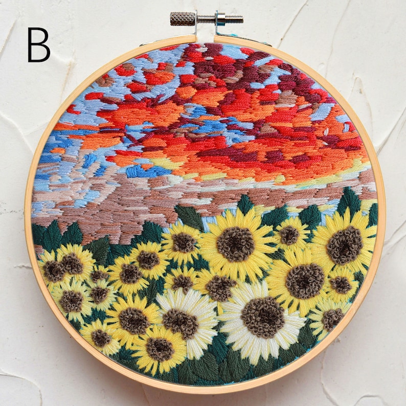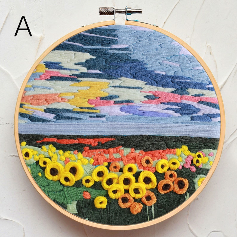 Create a breathtaking piece of embroidery art inspired by the vivid beauty of the Northern Lights and a glowing sunset sky. This Northern Lights Landscape Embroidery Kit combines vibrant threads, intricate floral details, and a serene mountain view – perfect for relaxation and creativity.