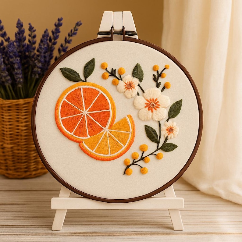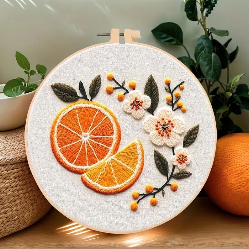 Brighten your space with the Orange Slice Embroidery Kit, a refreshing blend of citrus charm and floral elegance. Designed for beginners, this easy DIY kit lets you create a vibrant hand-stitched art piece featuring juicy orange slices surrounded by delicate blossoms and leaves. Perfect for mindful crafting, relaxing weekends, or adding a handmade touch to your home decor.