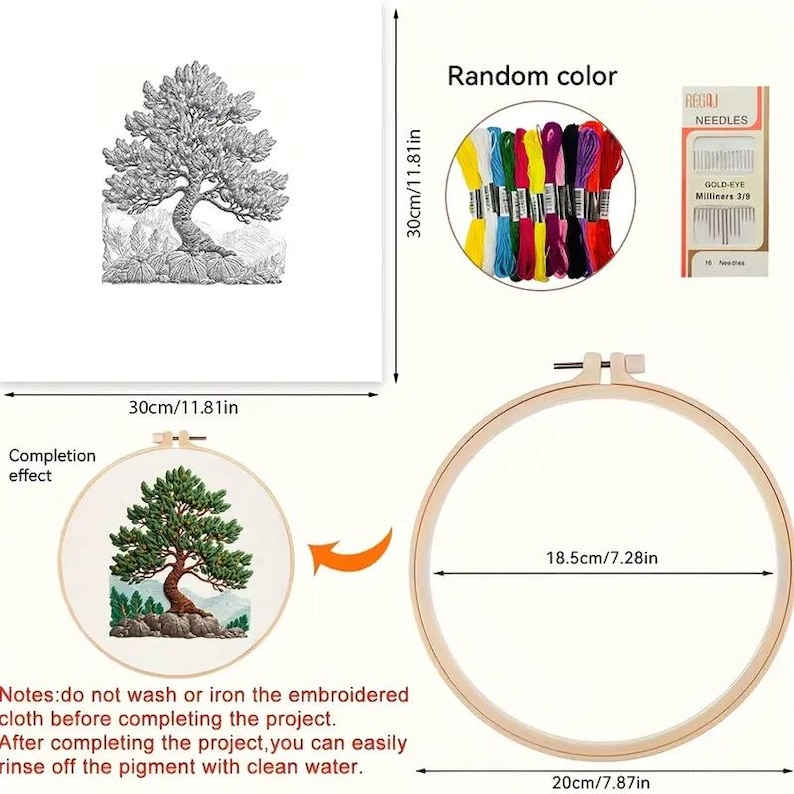 Experience the calm and beauty of nature with this Pine Landscape Embroidery Kit, designed especially for beginners. This DIY kit features a serene bonsai-style pine tree on rocky terrain with a misty mountain backdrop, perfect for mindful stitching and creative relaxation. The kit includes everything you need to start your embroidery journey, complete with clear, step-by-step instructions. Its soft, harmonious colors and detailed pattern make it a rewarding project for home décor or as a thoughtful handmade gift.