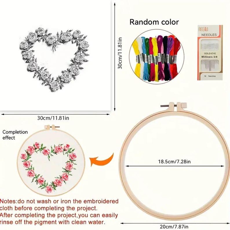 • 1 pc pre-printed embroidery fabric with floral wreath design