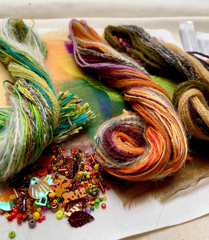 Explore your creativity with the Play Around Pack in autumn colours. Perfect for crafting unique embroidery projects, this DIY kit provides high-quality materials to experiment with textures, colors, and techniques. Whether following Katrina’s book Hand Stitched Landscapes and Wild Flowers or designing your own creations, this pack inspires endless creativity.
