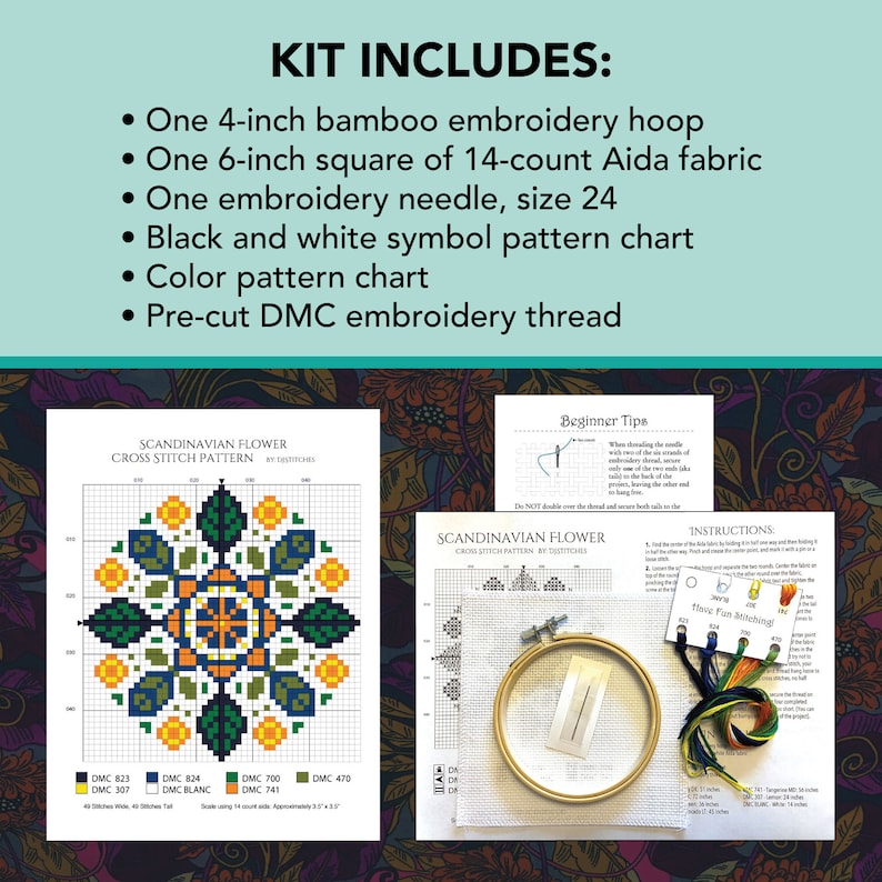 Scandinavian Flower Counted Cross Stitch Kit From $49.00