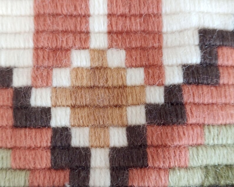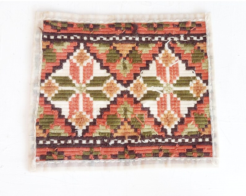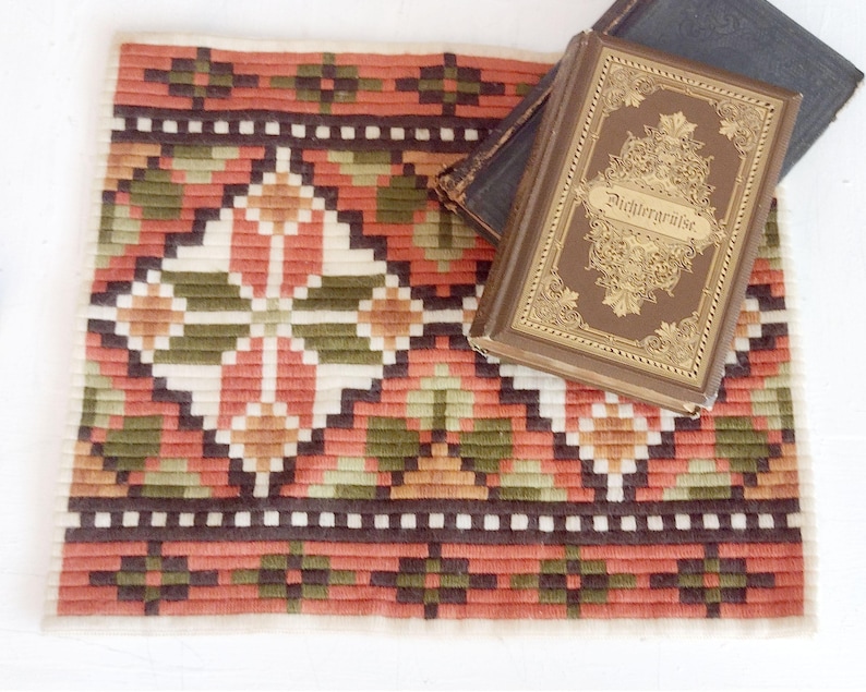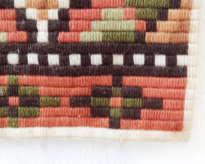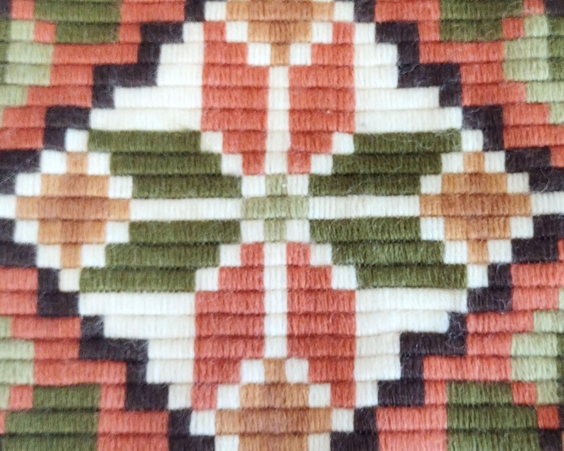 Bring Nordic charm into your home with this Scandinavian Folk Art Crewel Embroidery Panel, featuring a striking geometric design inspired by traditional patterns. This vintage fabric panel showcases detailed hand-stitched style embroidery work, perfect for collectors and needlework enthusiasts.