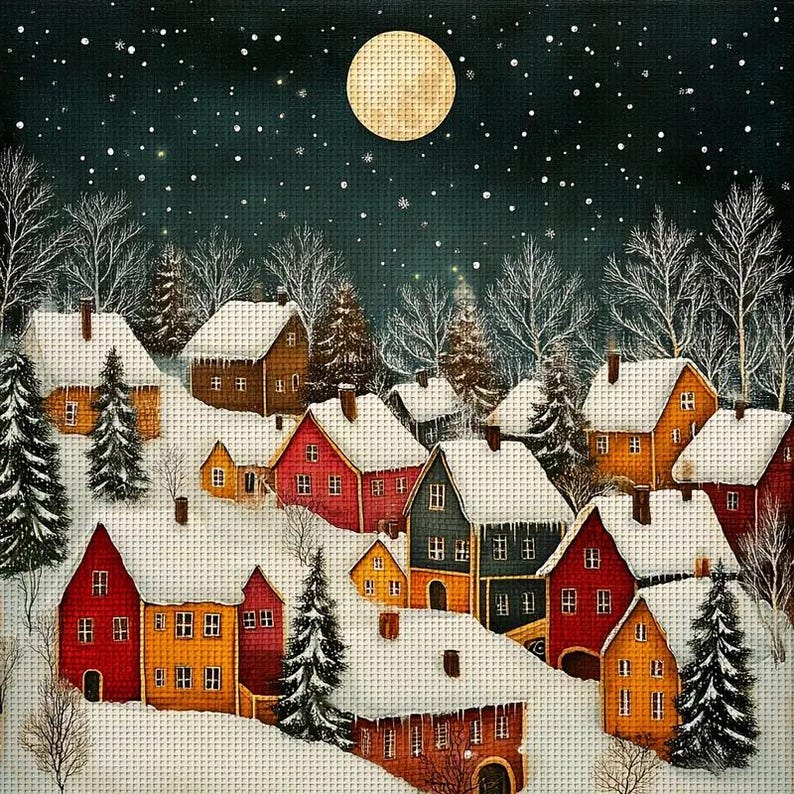 - Pre-printed 14 CT canvas with Snowy Night design