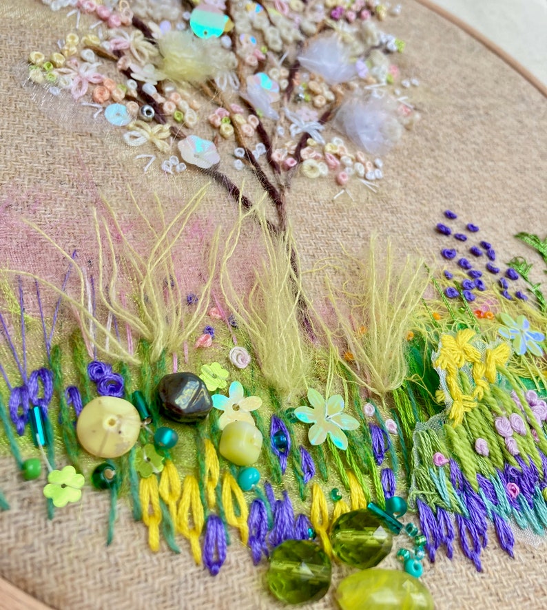 Bring the beauty of spring into your home with the Spring Blossom Embroidery Kit. Stitched on Rowandean’s unique tweed fabric, this kit features a stunning tree in full bloom, adorned with delicate white blossoms. When finished, it looks breathtaking in an 8” hardwood display hoop (sold separately).