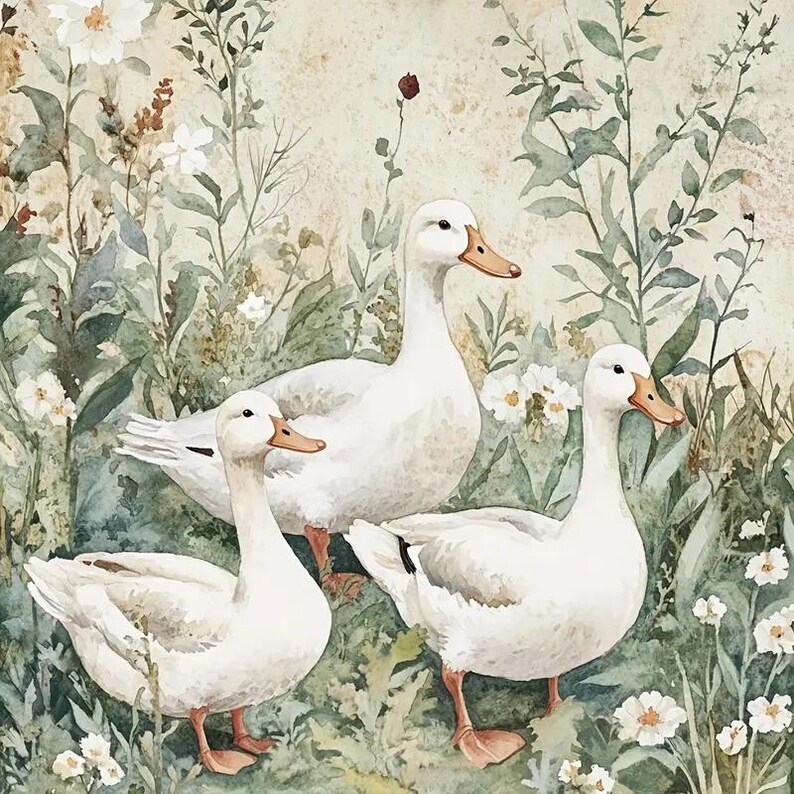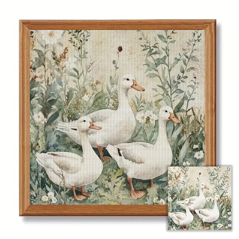 - Charming Design: Depicts elegant white geese in a peaceful meadow filled with delicate wildflowers.