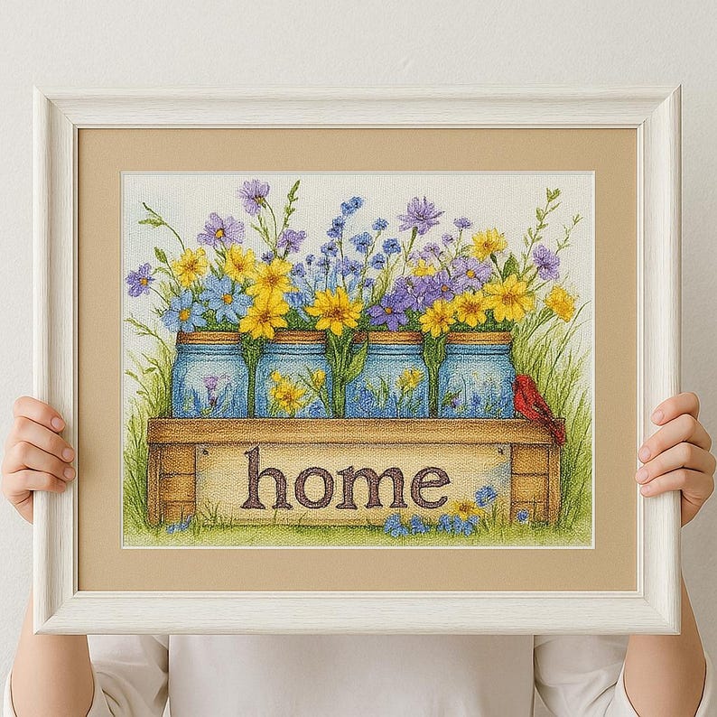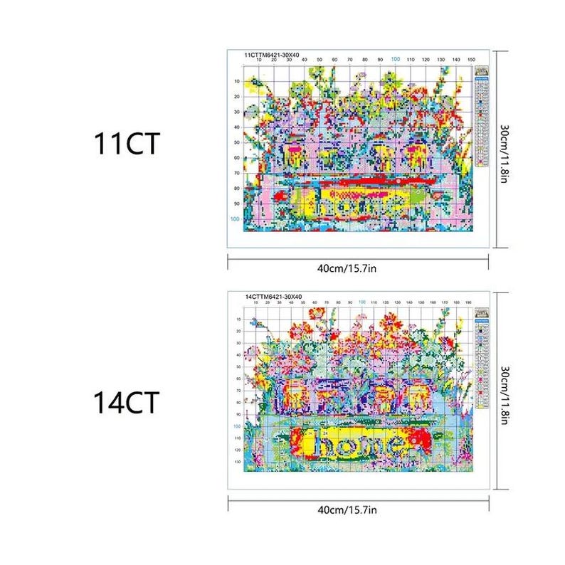 • Pre-printed 11 CT or 14 CT canvas with wildflowers in a vase design (select in menu)
