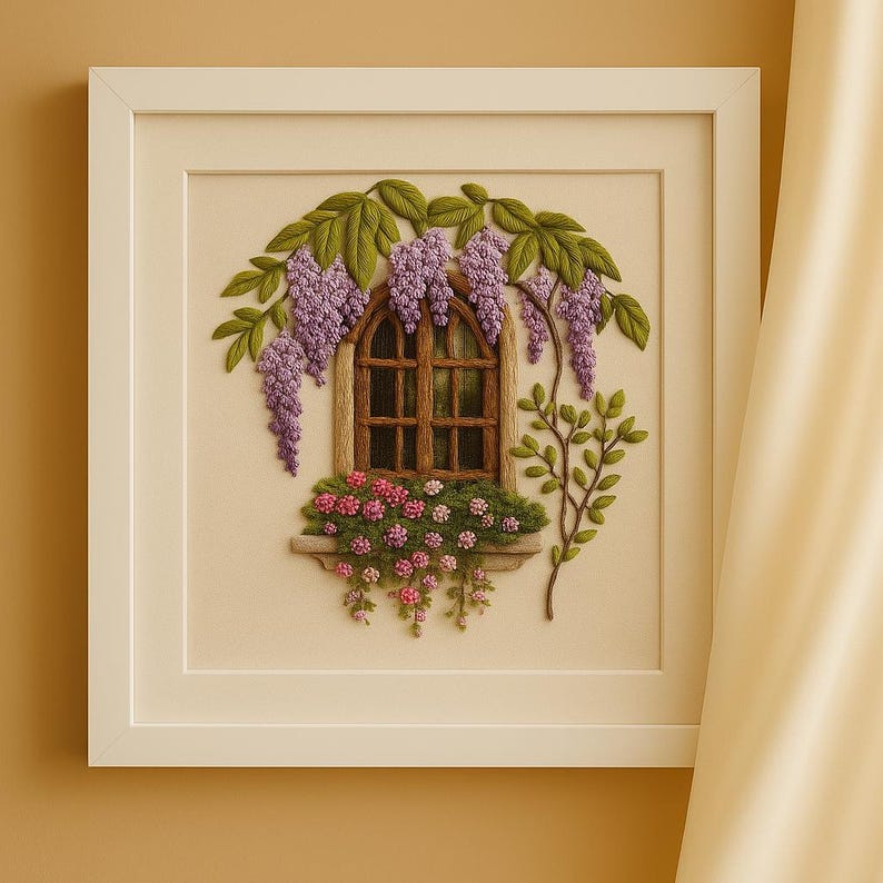 Create a timeless piece of art with our Wisteria Blossom Satin Stitch Kit, featuring a charming window surrounded by cascading flowers and delicate leaves. This high-quality embroidery set includes everything you need for a relaxing and fulfilling stitching experience. Ideal for home décor or as a thoughtful handmade gift, it brings a touch of elegance and tranquility to any space.