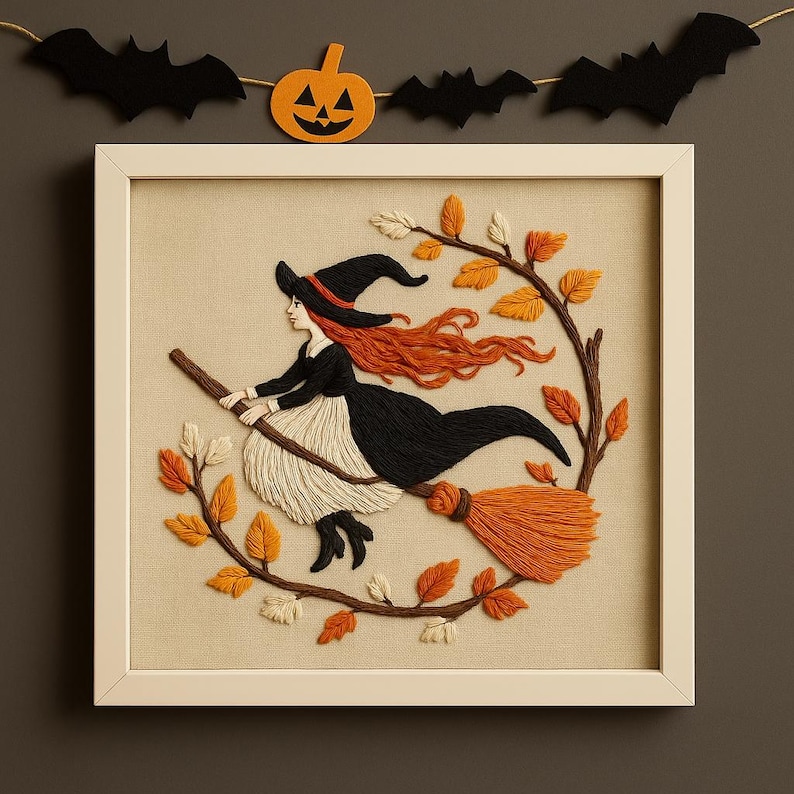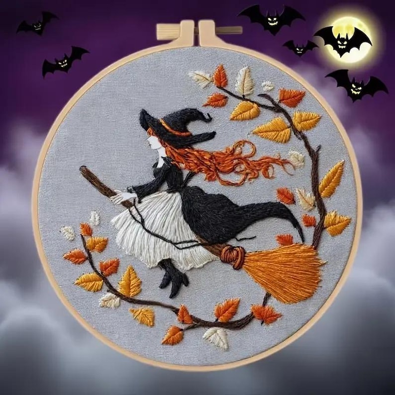 Celebrate Halloween with this charming DIY Witch Embroidery Kit. Featuring a graceful witch flying among golden autumn leaves, this kit is perfect for beginners and experienced stitchers. Relax and enjoy mindful crafting while creating a festive decoration for your home or a unique handmade gift.