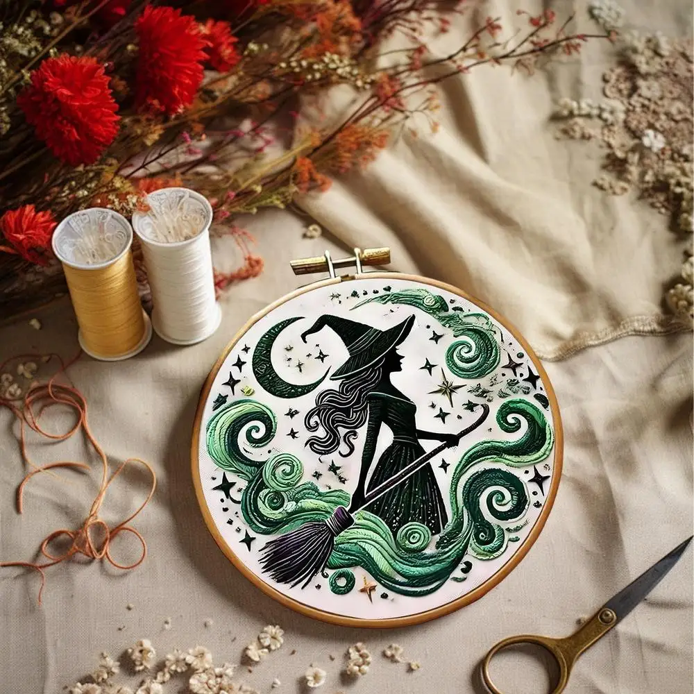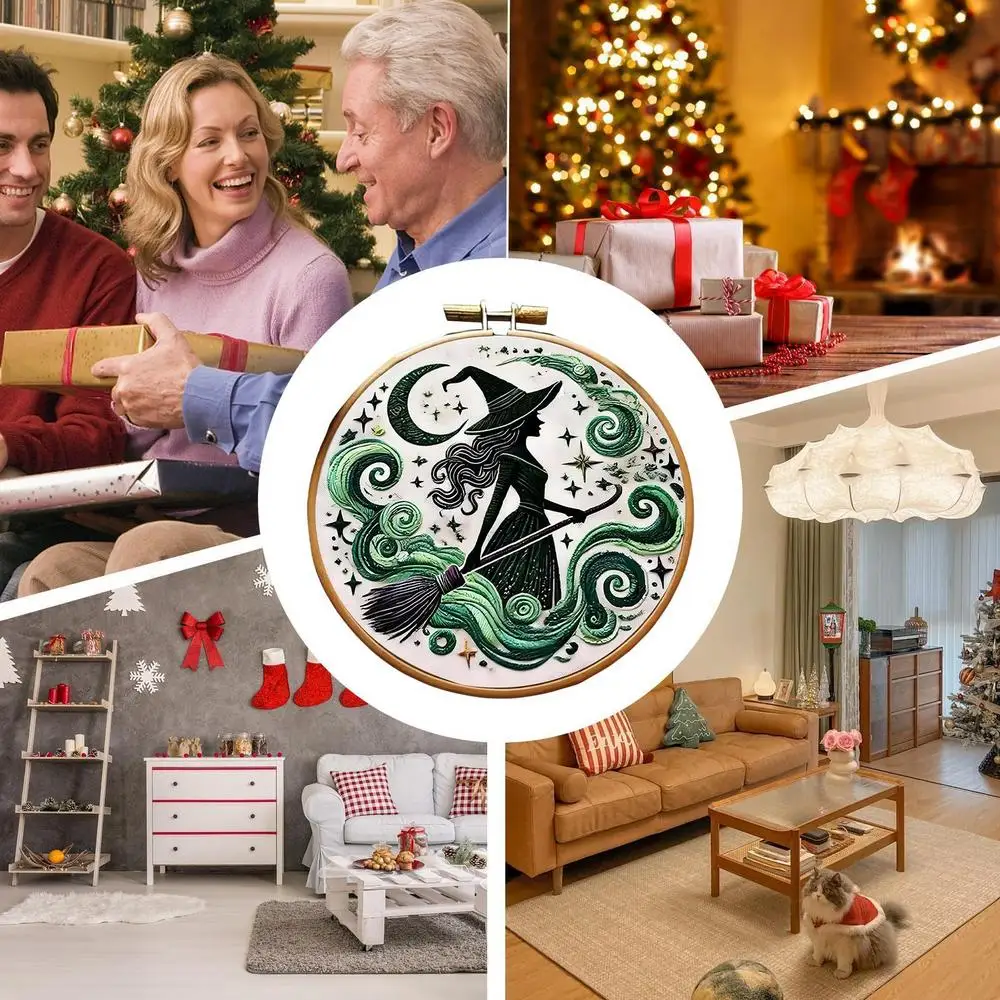 Crafted with durable and skin-friendly materials, this embroidery kit is perfect for creative projects, home décor, or seasonal crafts. The pre-printed fabric makes stitching simple and enjoyable, even for those new to embroidery. Once finished, the witch-themed design can be framed, hung on walls, or used as part of Halloween decorations, adding a creative handmade element to your festive setup.